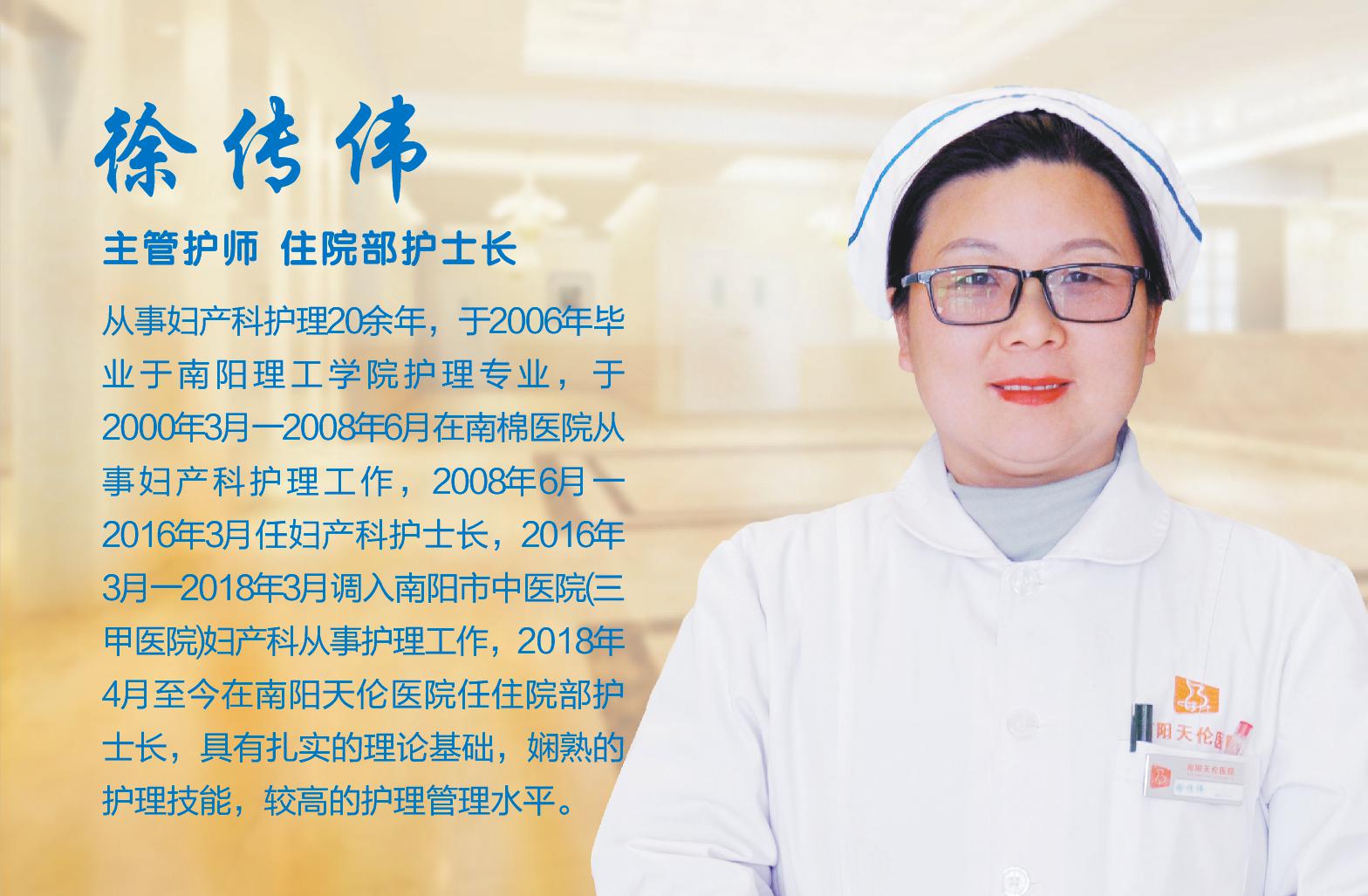 徐传伟 主管护师 住院部护士长 从事妇产科护理20余年...